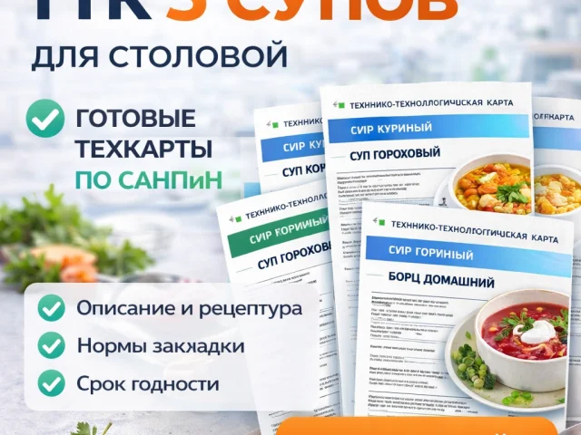 Борщ, рассольник, суп куриный, гороховый и харчо — готовый комплект документов